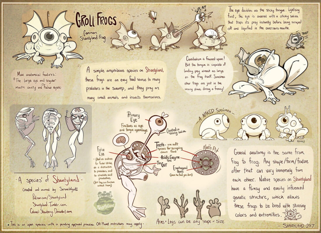Groll Frogs are an open species created for Shantyland and can be drawn and created by anyone! I have various Groll Frog bases that you can use to design a froggo. No breeding allowed. There is no wait list for creating a Groll Frog.Patrons get a 50% discount when they commission artwork of their Groll Frog(s).You do not need to be a Patron to create or adopt a Groll Frog!