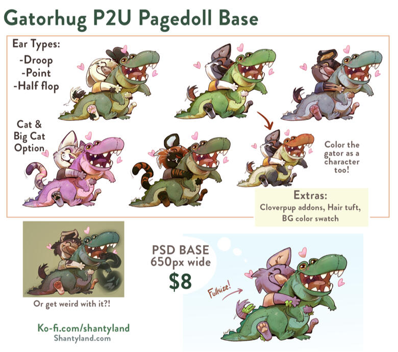 I keep my multi-slot YCH and Recolor Bases available to download through Ko-Fi. This way you can have no wait time in buying a base and downloading it. Click the images below to go to a specific base or click the button to view my entire Ko-Fi!